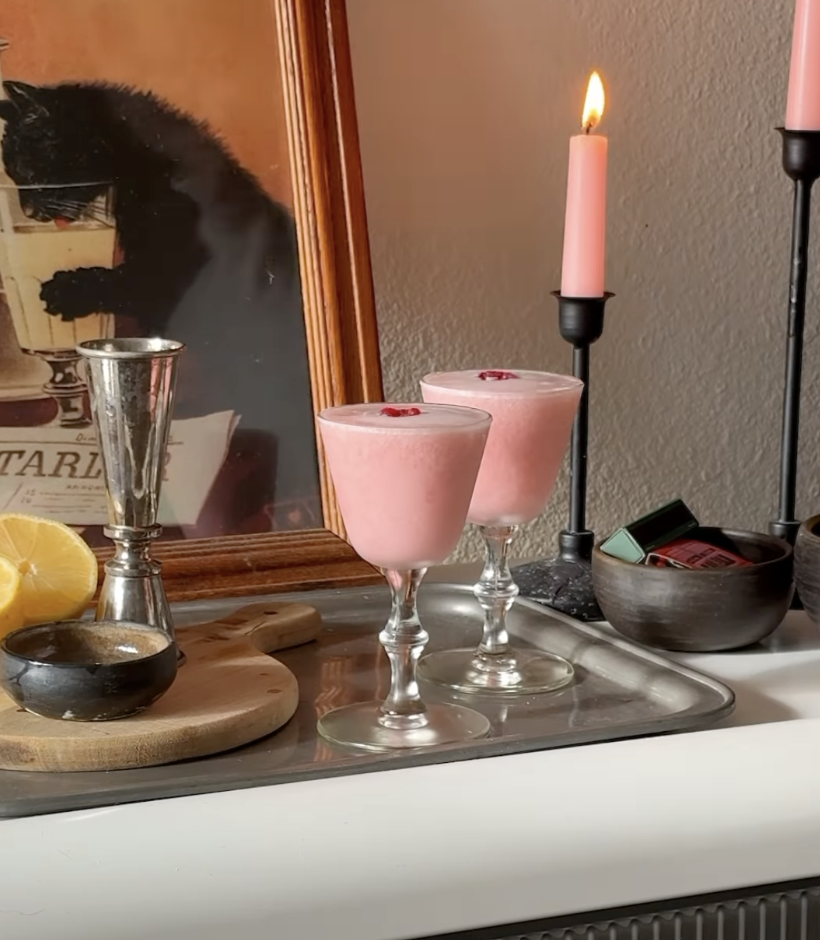 If you’re serving a cocktail for Galentine’s, you might try something that feels a little romantic and vintage without being over the top. Lately, I’ve been making a Clover Club for Two. It’s a classic gin cocktail with raspberry and lemon that feels feminine, nostalgic, and is honestly just really pretty in a glass. It’s the kind of drink that looks impressive but is surprisingly easy to pull together.
