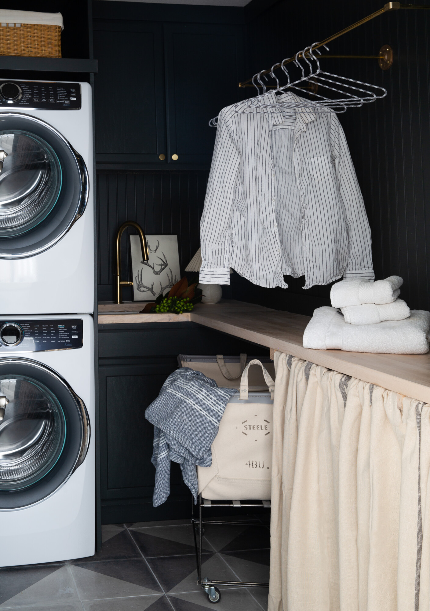 Clouz Houz Tip: When you have rooms without much natural light, like our powder room or laundry room (no windows in there, oh dear!), don’t shy away from embracing the darkness. Painting them in deep and rich colors elevates the mood instantly. I’m even loving the trend of rich jewel tones in these spaces lately — they add a hint of cool and classy vibes!!