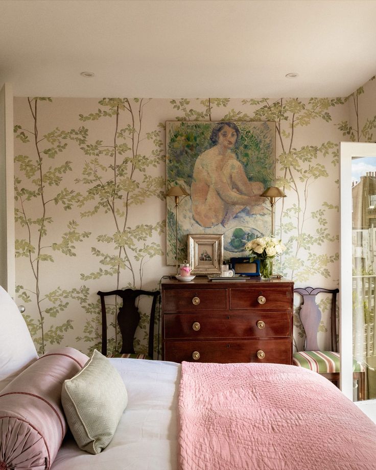 Pattern drenching is exactly what it sounds like: letting patterns take over a space. Wallpaper, rugs, textiles, upholstery, even ceilings, all working together instead of being afraid of each other. We are going to see a lot more of this as people want to feel cocooned in their spaces with color and patterns, and this brings a comforting feeling to homes.